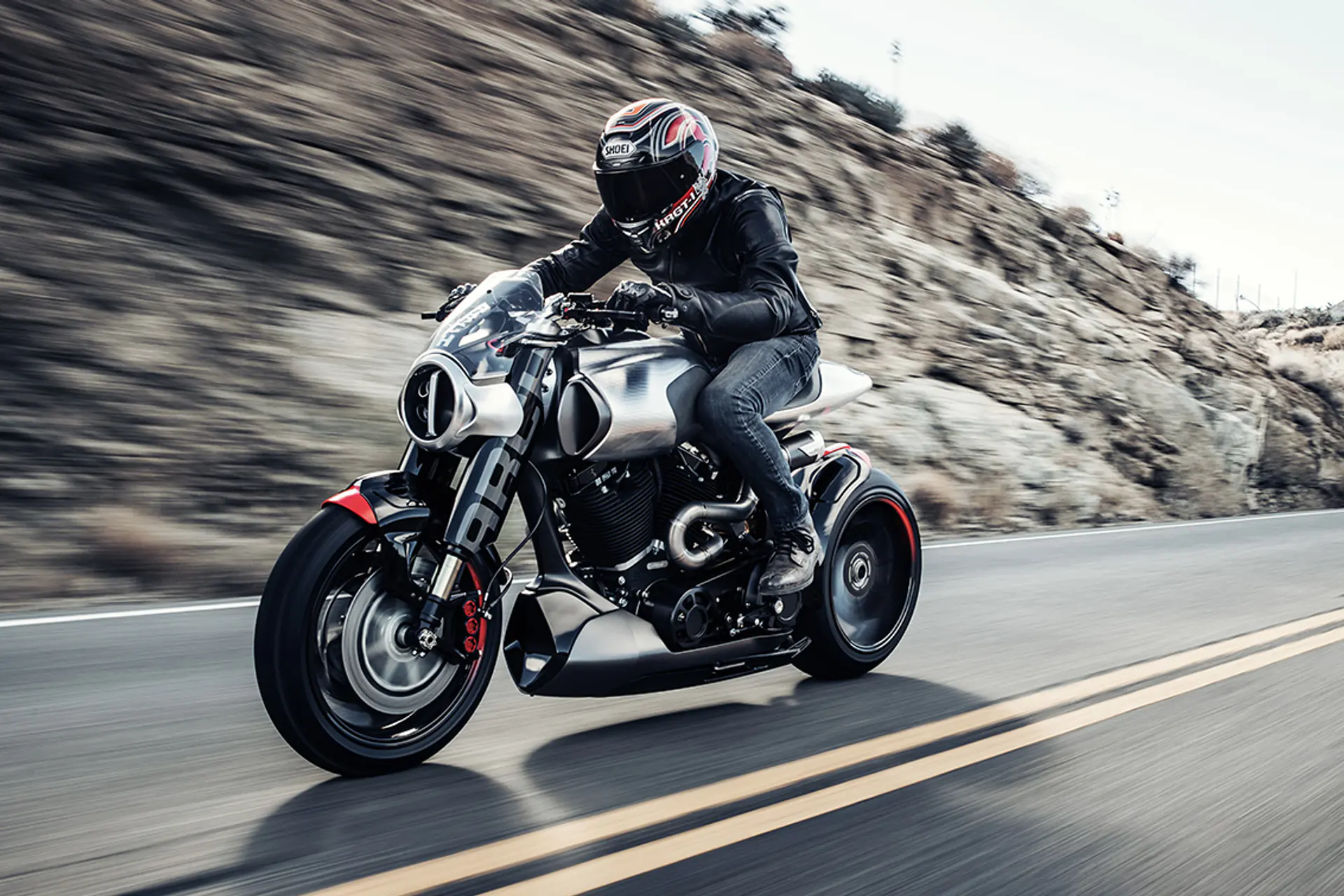 Κινητήρας S&S 143ci (2,343cc). Το σασί είναι carbon fiber monocell, πρώτη φορά σε αμερικανική παραγωγή. Η αποθήκευση καυσίμου και το φιλτράρισμα αέρα είναι ενσωματωμένα στο σασί. Swingarm CNC-machined αλουμίνιο, κατασκευασμένο από τη Suter Industries της Ελβετίας.