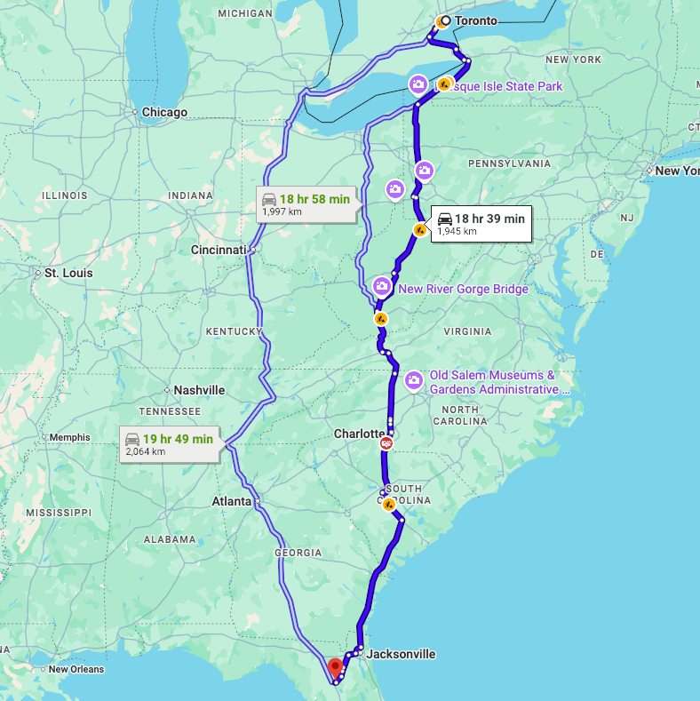 Για να καταλάβεις, η διαδρομή που έκανε από το Τορόντο (Καναδάς) μέχρι το Gainesville (Φλόριντα) περνάει από τα Απαλάχια Όρη.